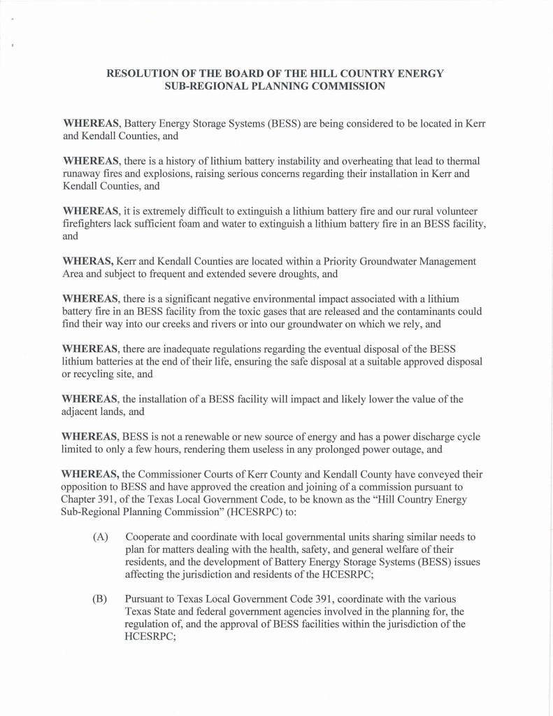 Kerr County Commissioners’ Court Workshop on BESS, 391 SRPC Progress and Fire Code Compliance